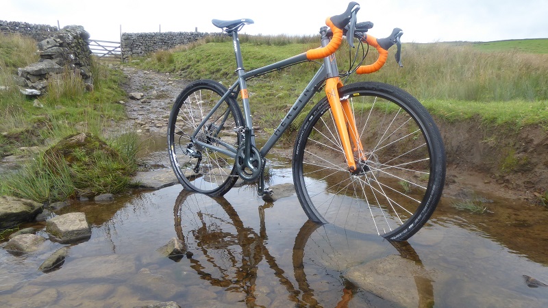 The Shimano 4700 Tiagra 10 speed groupset was well up to the job. The shifting was accurate and easy, the levers worked well with the Tektro Lyra cable discs which also did a great job at controlling the speed. The Tiagra finish also goes well with the grey paintjob, giving a ‘well thought out’ appearance to the bike. The gearing was also bang on the money, with the 32 sprocket on the Tiagra cassette seeing some action as the tracks got loose and started pointing upward.