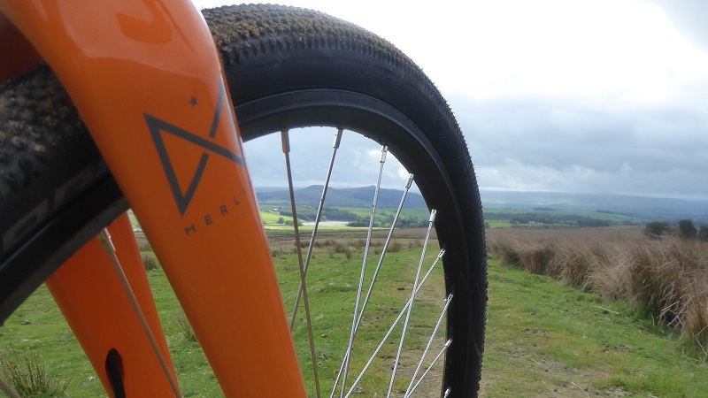 The frame (Double Butted 6061 aluminium), is stiff and responsive for those hard efforts and still feels comfy and well-balanced. The steering is sharp and accurate, the full carbon fork keeps the front end light – easy to hoist up when you need to clear obstacles (mainly fresh sheep and cow poo on this ride). The Mavic X119 rims offer a good mix of strength, reliability and not too much weight.