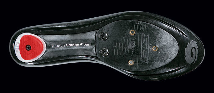 SIDI first full carbon fibre sole. It was designed not to be entirely rigid. It was a different thickness at different parts of the sole. Some of this was to encourage healthy blood circulation. Another added bonus was that the thinness brought the foot closer to the pedal axle for improved bike handling and feel.
