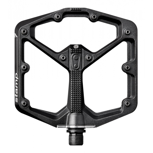 The flat pedal from crankbrothers is engineered to provide the optimal interface between shoe and pedal. The 13mm external and 11mm internal thickness on the level 7 stamp provide a low profile concave pedal body that your feet sit into. Adjustable pins allow the rider to fine tune the feel.