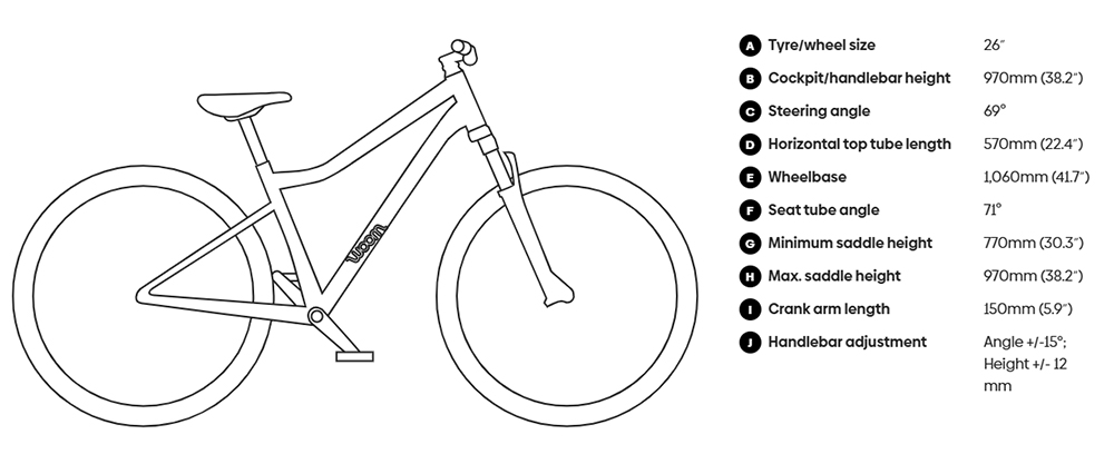 - Chainset: Woom Lightweight 150mm - 28T