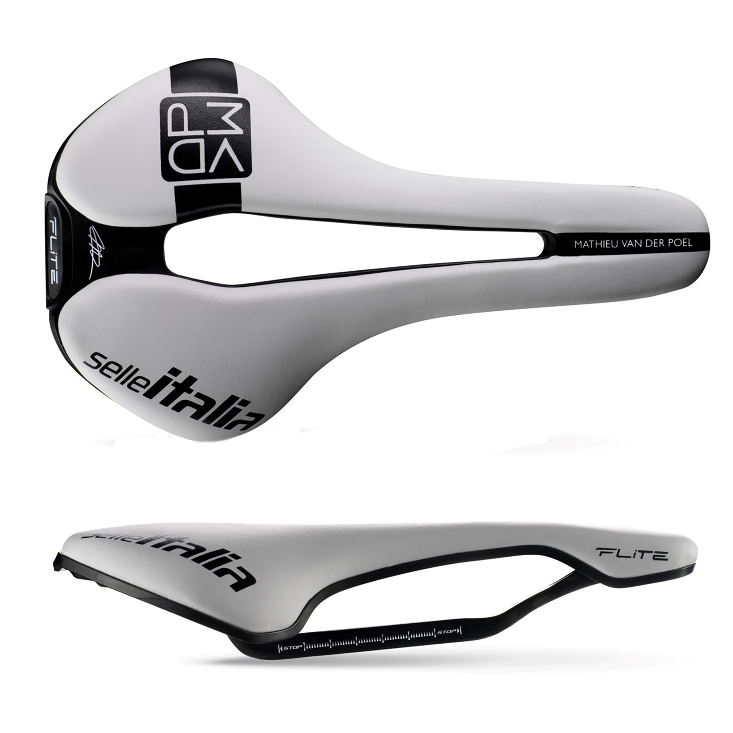 A celebration of tradition, style, and racing heritage the Selle Italia Flite Boost Kit Carbonio Superflow MVDP Edition continues the legacy of one of cycling’s most iconic saddles. Developed in collaboration with world-class athlete Mathieu Van der Poel, this special edition combines cutting-edge performance with unmistakable style. Finished in the signature white used by MVDP in competition and featuring a dedicated “MVDP” logo, it embodies the perfect balance of elegance and race-ready precision.