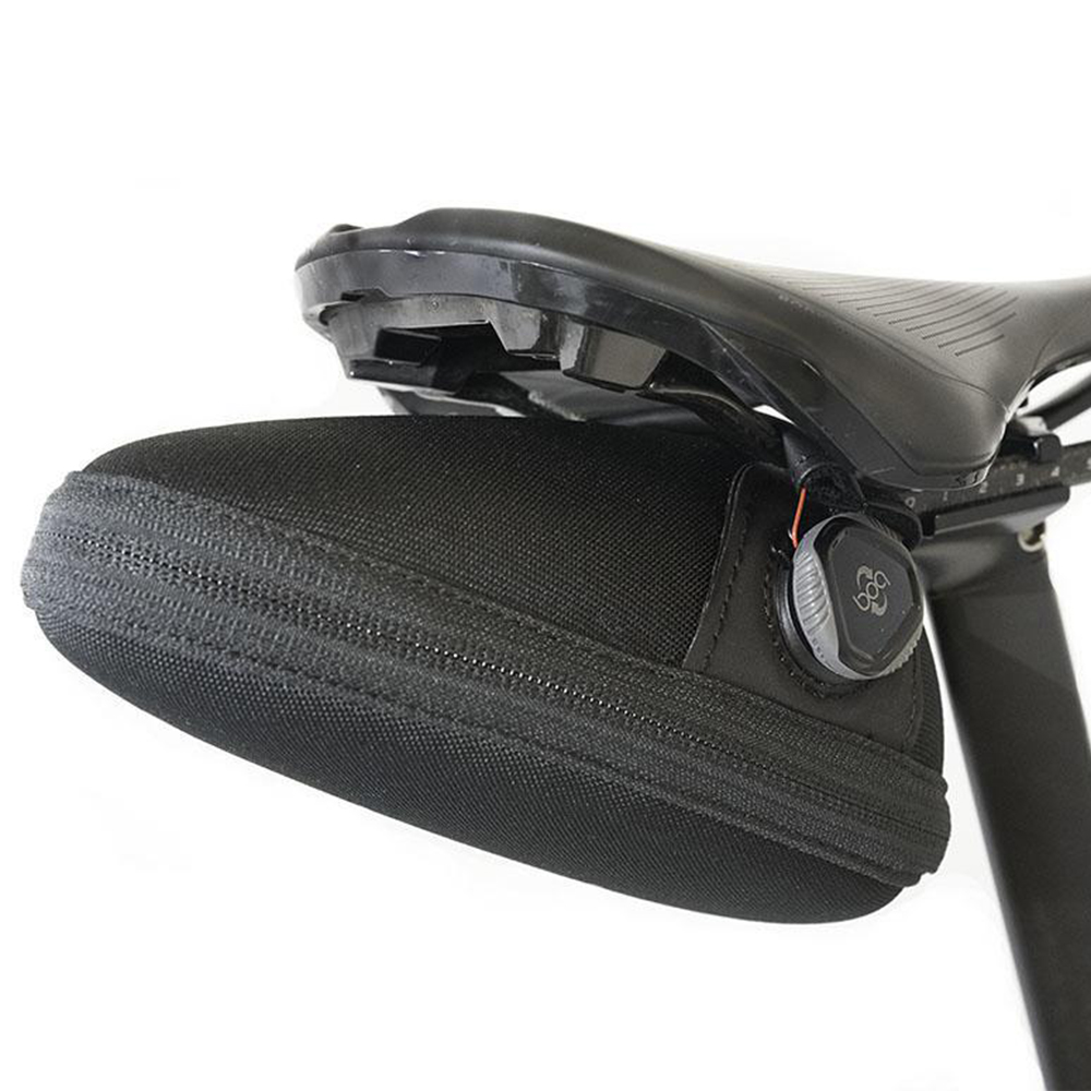 The location of the Boa Closure System and Guide Rail Guard have been optimized for stability and aerodynamics. Not only does this tilted position secure the capsule right up against your saddle when fully installed, but it also pulls it away from your seat post and legs. If you run a dropper post and/or have ever experienced rubbing from a saddle bag, Seat Capsule Premio is for you.