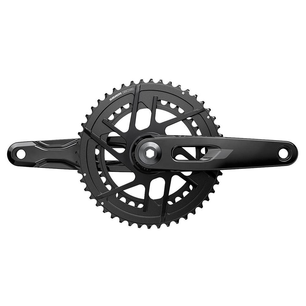 Sram's most advanced aluminium road crankset is also their most stunning. Careful engineering has resulted in crankarms that optimize stiffness to weight ratio, with material only where it’s needed. Integrated chainrings deliver flawless shifting in ranges that fit your needs, with the whole package coming in over 50 grams lighter than the previous generation.